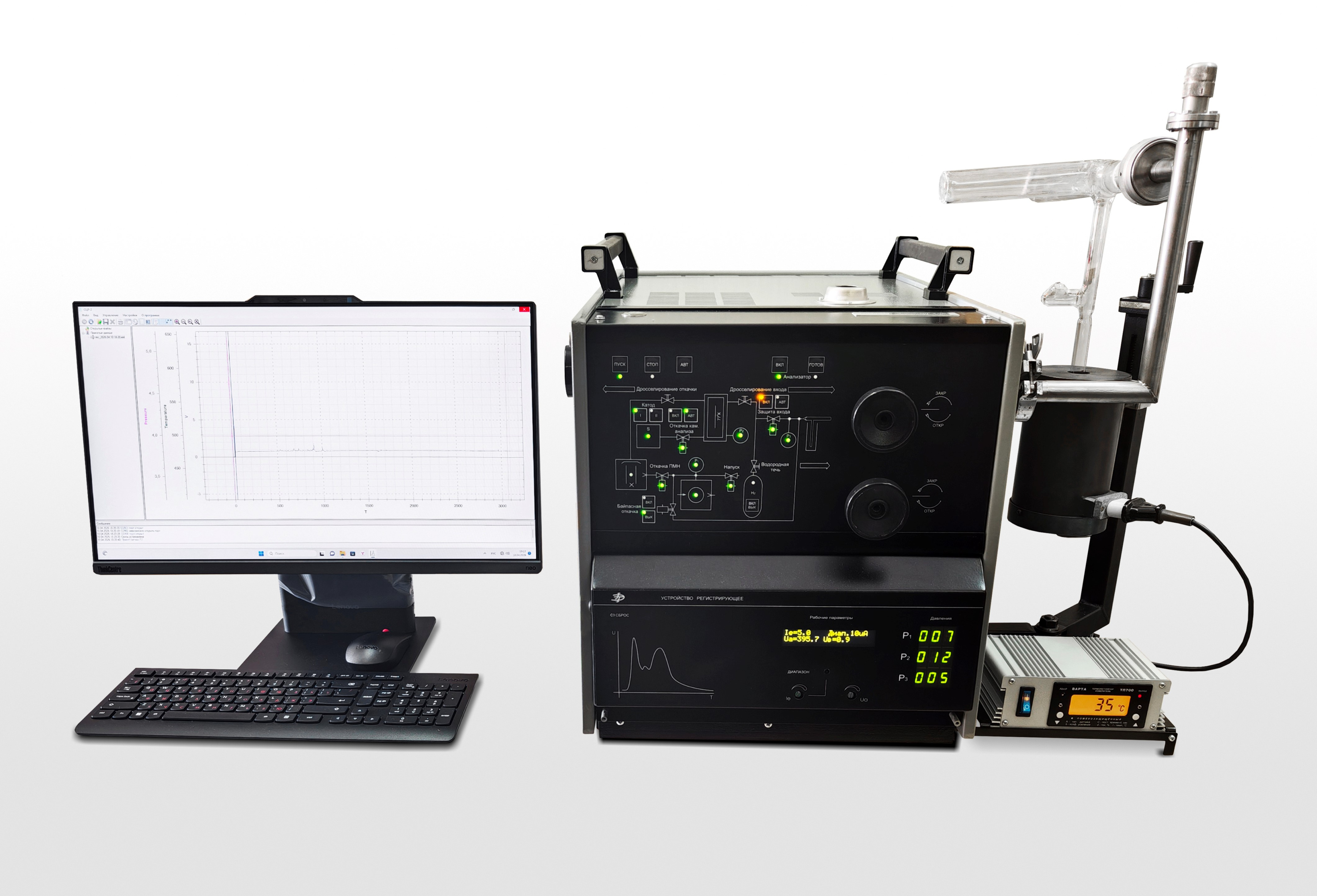Анализатор АВ-1 представляет собой специализированный высокочувствительный магнитный масс-спектрометр, настроенный на регистрацию водорода, снабженный экстракционно-загрузочным узлом для высокотемпературной вакуумной экстракции водорода из образцов различных металлов и сплавов.